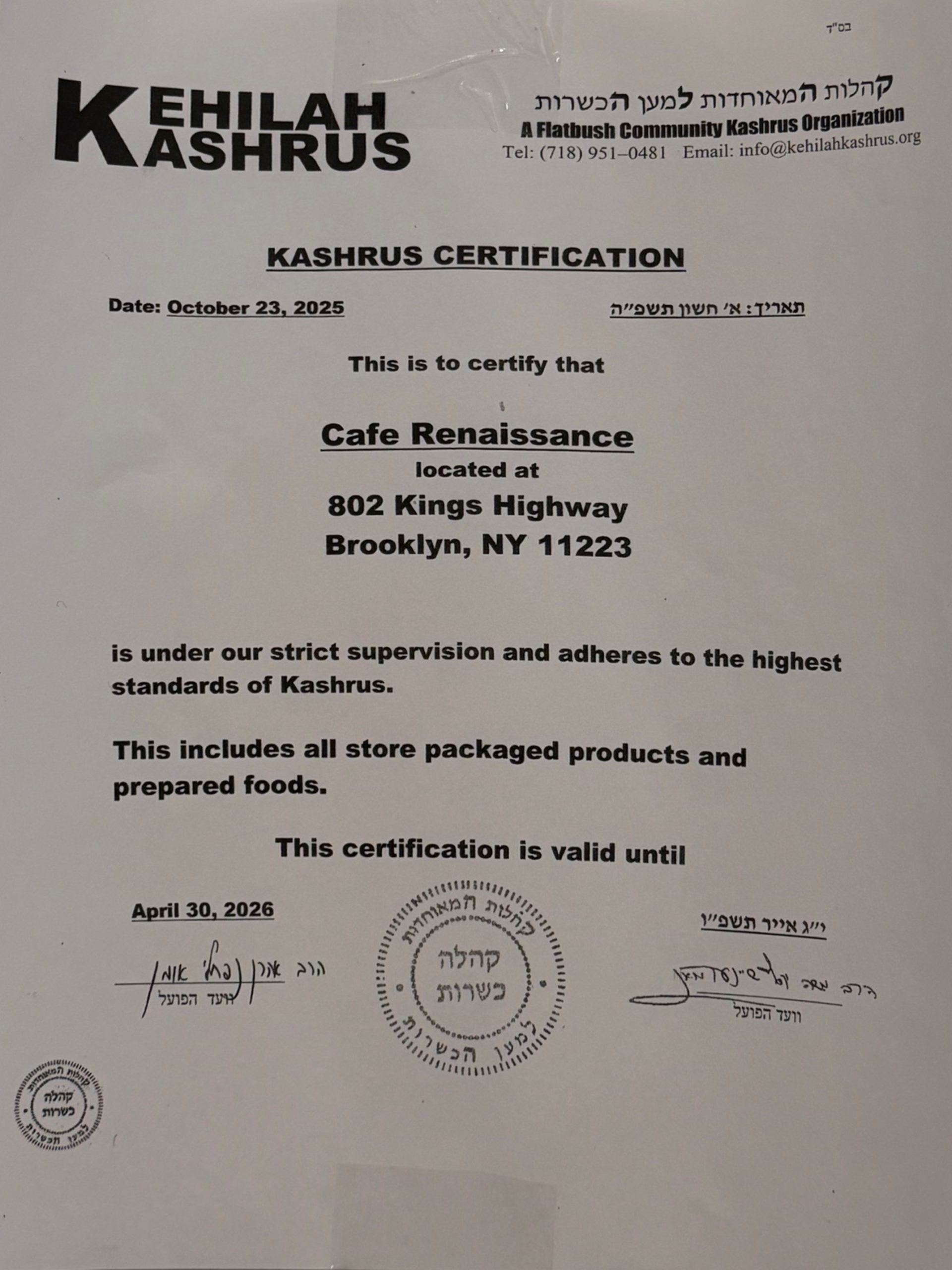 Shaul and Tikvah, who are constantly going in and out of the kitchen making sure everything is perfect and up to their standards, are also on the floor welcoming their guests. It is that dedication and care that leads Cafe Renaissance, whether in the afternoon or late at night, to be the center of attraction. But, ultimately, it’s the quality of the food that draws its clientele for repeated visits.
